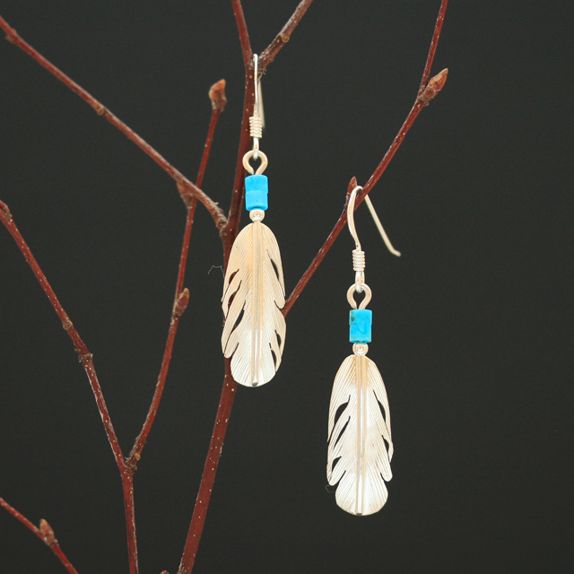 silver feather earrings by Harvey Chavez