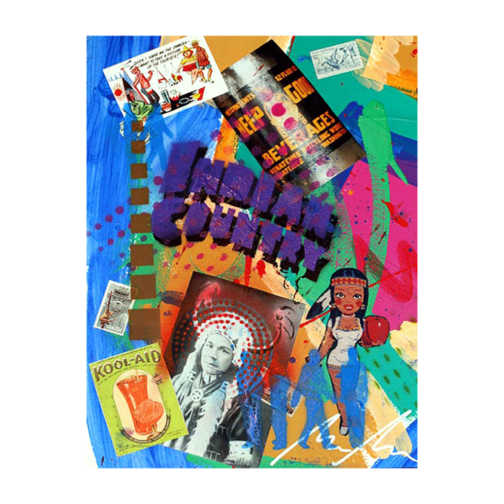 Marcus Amerman is a multi-faceted artist, unfetterd by the limitations of any one medium, mindset or cultural expectation. Performance art, fashion design, film, sculpture, beadwork, painting and conceptual installation are just some of the choices in his repertoire. Marcus frequently repatriates misappropriated Indian imagery and identity by any conceivable means. He may bead colour into historical pictures of famous or nameless people, collage two dimensional cartoons onto vibrant canvases or re-stage old Edward Curtis photographs with friends, acquaintances and modern day articles. Marcus Amerman is most recognised for his exceptional beadwork which can be found in numerous museum collections throughout North America.
